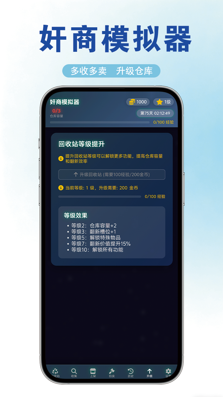 你将扮演一位回收站老板 ,模拟体验从小摊贩到商业大亨的奸商发家之路。模拟