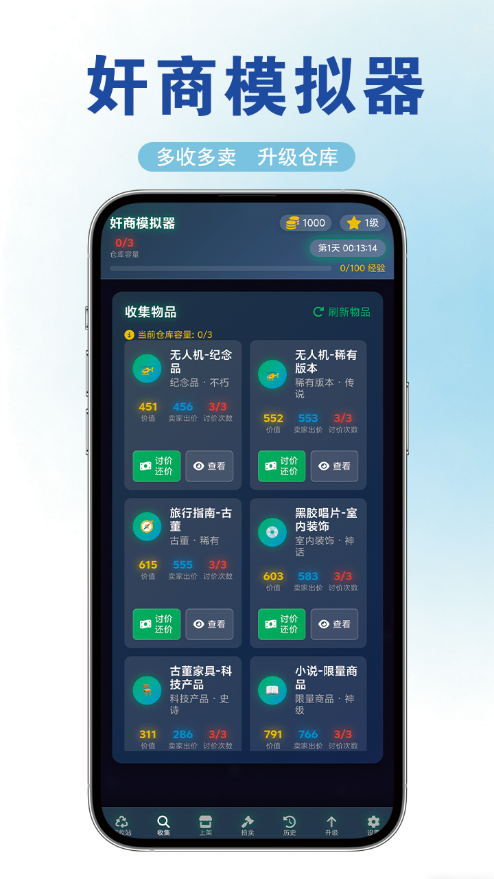 通过收集废旧物品 、奸商再以高价出售或拍卖,模拟